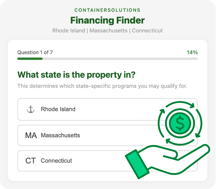 Answer 7 quick questions to see state-specific incentives, solar grants, and financing terms tailored to your project.